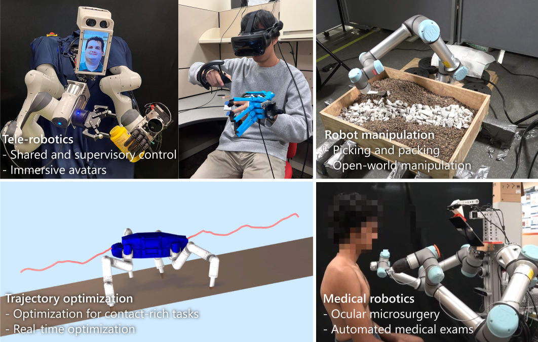 - Robot motion planning and control, semiautonomous robots, and integrating perception and planning, as well as applications to intelligent vehicles, robotic manipulation, robot-assisted medicine, and legged locomotion.